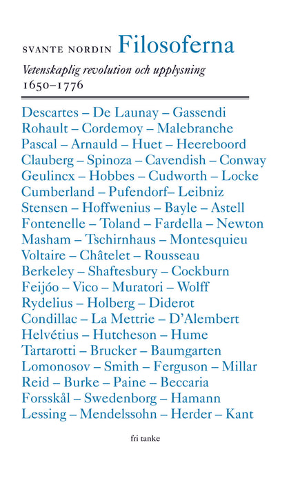 Svante Nordin presenterar här de ”nya filosofer” som under 1600-talet ställde naturfilosofin på ny grund. Dessutom de upplysningsfilosofer som nästföljande sekel skapade ett nytt begreppssystem för samhället, moralen och religionen och därmed öppnade dörren till vår moderna värld.