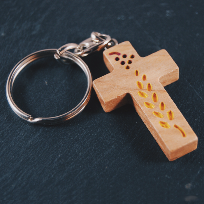 Nyckelring med Jesu hjärta i färg med omfattning av olivträ