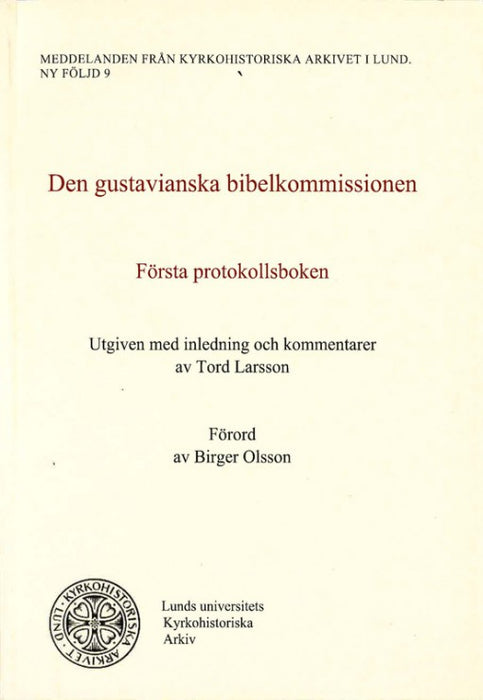 Den gustavianska bibelkommissionen: Första protokollsboken: Utgiven med inledning och kommentarer av Tord Larsson, Förord av Birger Olsson