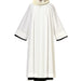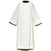 Rummelig alba med skjult lynlås, som fungerer perfekt sammen med præstekjol og pibekrave.
