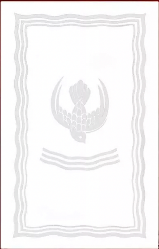 SchreibmayrServett 30 x 50 cm. Dekoren invävd i linnedamasten: (den helige Andes duva). Behöver manglas efter tvätt.