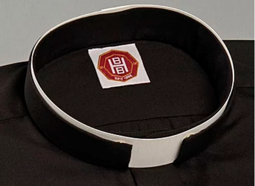 Plastkrage till tonsurskjorta av märket B&H, med tryckkrappar.