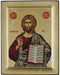 Kristus Uppståndelsen: Allhärskar-/Pantokratormotivet är ett av de äldsta ikonmotiven i den tidiga kyrkan, och förblir central i den östra delen av kyrkan.Kristus har varken krona eller spira på denna framställning, utan endast evangelieboken öppen och vilande mot bröstet (text: »Jag är Uppståndelsen och Livet...») och hans högra hand välsignande och undervisande. De två sammanförda fingrarna talar om Kristi två naturer (gudomligt och mänskligt) och de tre om den heliga Treenigheten. Denna 1500-talsikon skrevs av hagiografikern Michelis Damaskinos från den sk kretensiska skolan. Orginalet finns på det Bysantiska muséet i Aten.