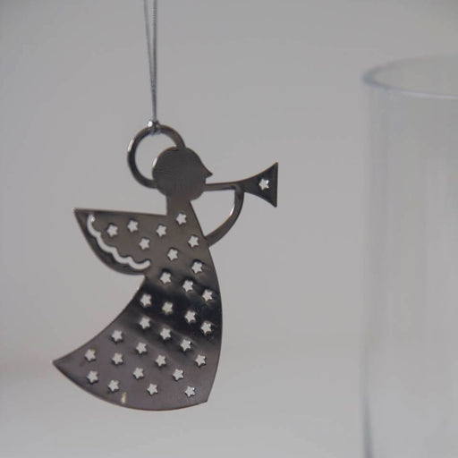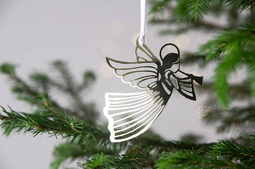 Pluto ProdukterFlygande ängel som hänge i silver metall. Häng i granen, dekorera krans eller paket! 70x70 mm