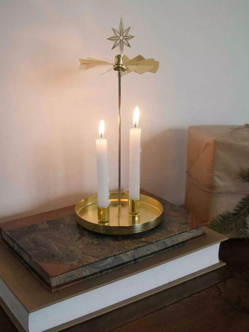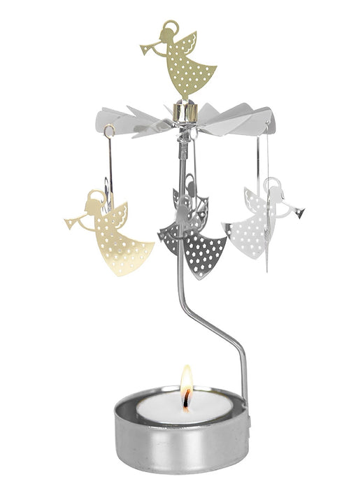 Änglaspel med plats för värmeljus, änglaspelet som roterar när värmen stiger blir en fin detalj året runt. Höjd: 16cm