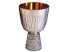Koppar, utvändigt försilvrad, invändigt förgylld. Höjd 15 cm, diameter 10 cm. Rymmer 5,5 dl.