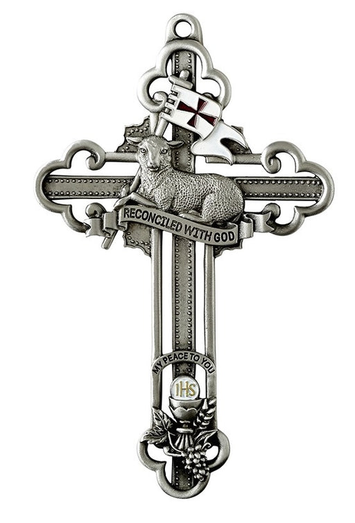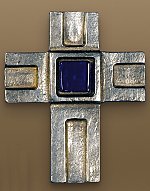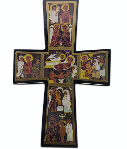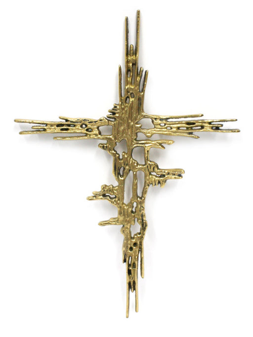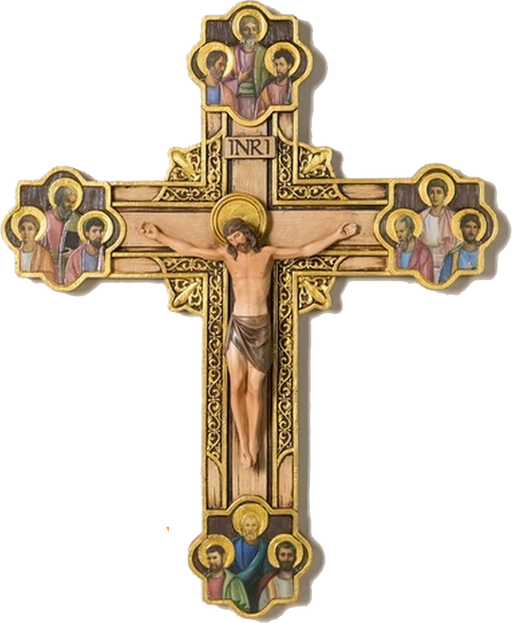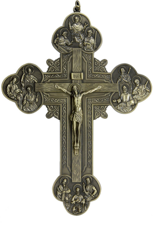 Krucifix i mässing med de tolv apostlarna runt Kristus. Höjd: 29cm, Bredd: 20,5cm