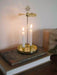 Klassiskt änglaspel i guldmetall med små kyrkljus, ger en magisk känsla i rummet.