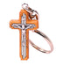 Olivträ från det Heliga landet. Inbäddat i träfattningen finns ett inlägg i silverfärgad metall som bildar ett krucifix.