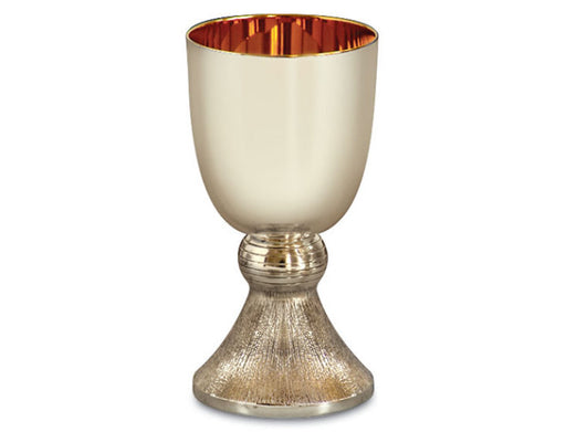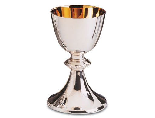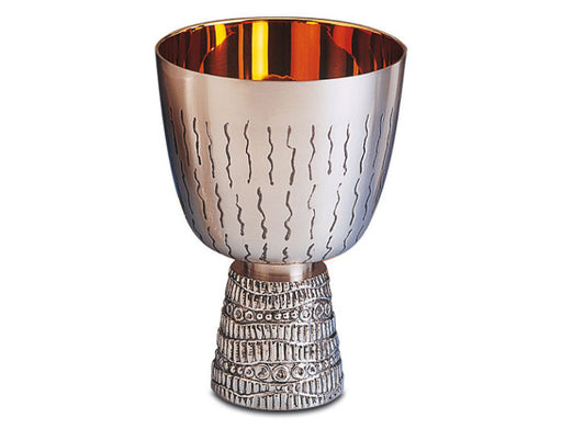 Rostfri kalk 12 cm hög (rymmer 2 dl), försilvrad oblatask 8,5 cm diameter (rymmer ca 75 oblater), glasflaskor, torkduk och corporale.