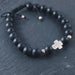 Armband med svarta pärlor och makraméfäste och kors i sterling silver (Achatis-design)