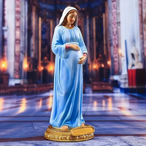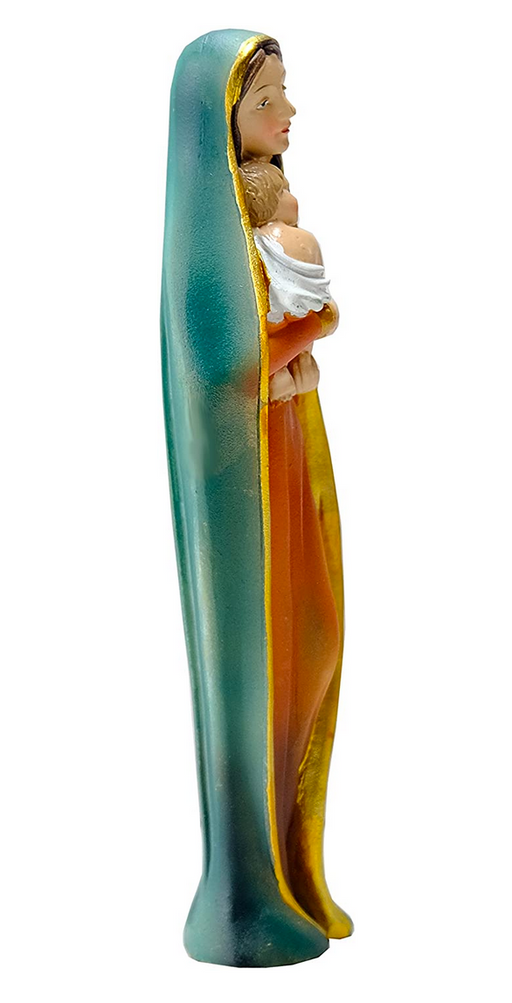 Klassisk reproduktion av Guds moder med Jesusbarnet i famnen, utförd i kompositmaterial och handmålad.