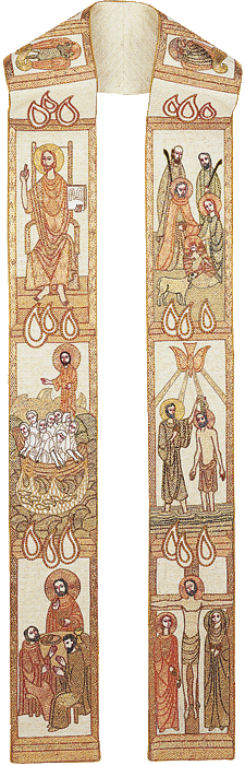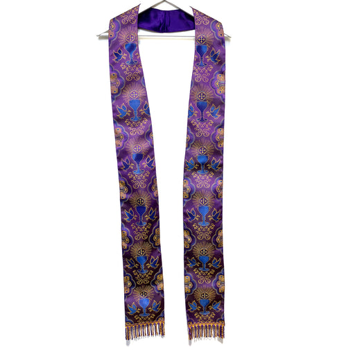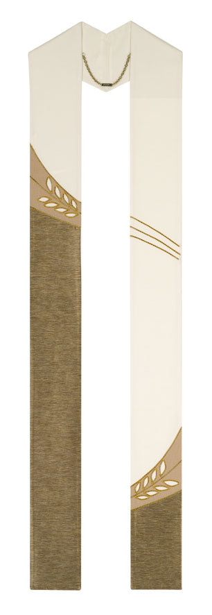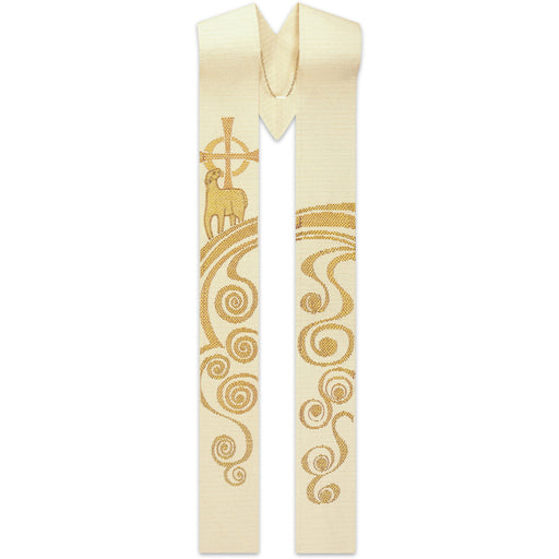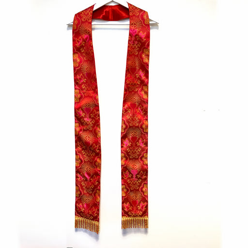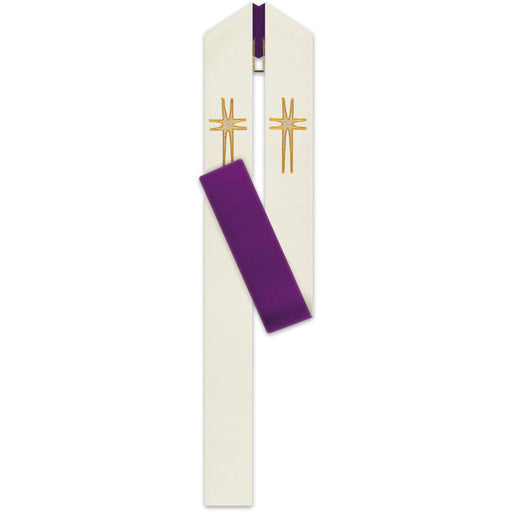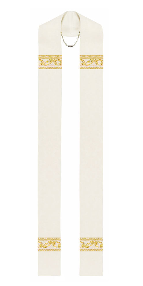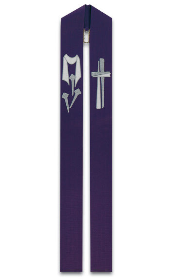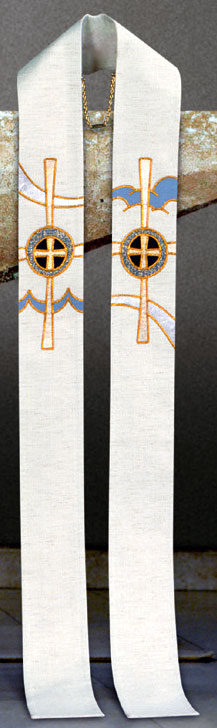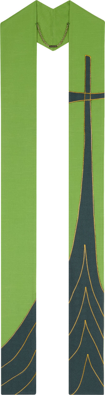 Enkel stola i ulltyget Brugia 9 cm bred och 130 cm lång med rakt maskinbroderat kors.