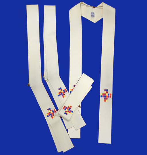 Enkel stola i i Lucia (53% polyester, 31% cotton, 16% viskos) 9 cm bred och 130 cm lång med broderade kors.