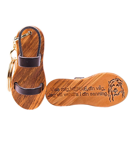 Nyckelring med "Nyckel" i metall med S:t Kristoffer, omfattning av olivträ