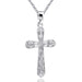 Korsets ena sida bär dekor, medan den andra sidan är högglanspolerad (så det kan bäras på två vis). Material 925 Silver. Storlek 16 x 30 mm (1,2 gram) + 50 cm kedja. Rhodinerad yta skyddar mot oxidering.