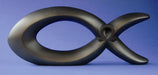Uttrycksfull figurin i kompositmaterial. Kombinerar två klassiska Kristus-symboler: alpha-omega (den förste och den siste) och Ichtys - det hemliga tecknet för kristen tro under förföljelsetiden. Det grekiska ordet för fisk, ichtys, bildas av begynnelsebokstäverna i bekännelsen Jesus Kristus, Guds Son, Frälsaren.