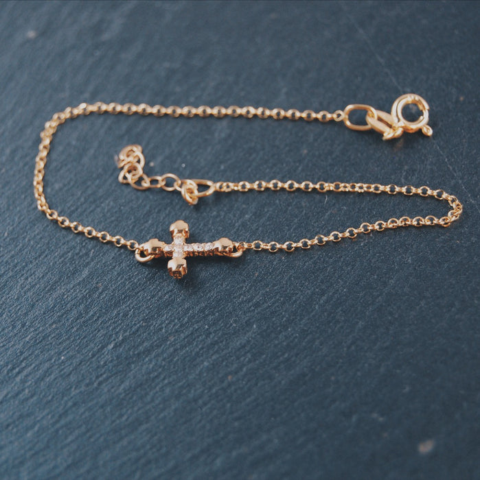 Armband med nätt guldkors med Swarovski-kristaller