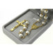 Imiterade pärlor 8 mm i sammetsask. Korset mäter 4 x 2, 7 cm. Kulorna är 8 mm. En rosenkrans med svarta pärlor. Rosenkransen är ett katolskt redskap för meditativ bön. Medan man upprepar olika fastställda böner för de olika pärlorna fokuserar och mediterar den bedjande över olika grundläggande kristna händelser/mysterier.Rosenkransens 59 pärlor, som var och en representerar en bön, bildar ett radband. I början av radbandet finns ett kors och fem pärlor: tre små, omslutna av två stora pärlor. Sedan bildar tio små pärlor och en stor en sk dekad, det är fem sådana totalt. En enkel handledning hittar du i det lilla häftet Rosenkransen av broder Wilfrid Stinissen