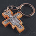 Nyckelring med San Damiano-kors i metall med omfattning av olivträ