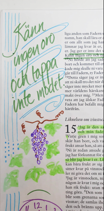 ”Våra känslor, upplevelser och tankar blir synliga via våra händers arbete. Vi blir på ett alldeles speciellt sätt medskapare. Bibeln och ditt skapande på bibelsidorna hör ihop.”